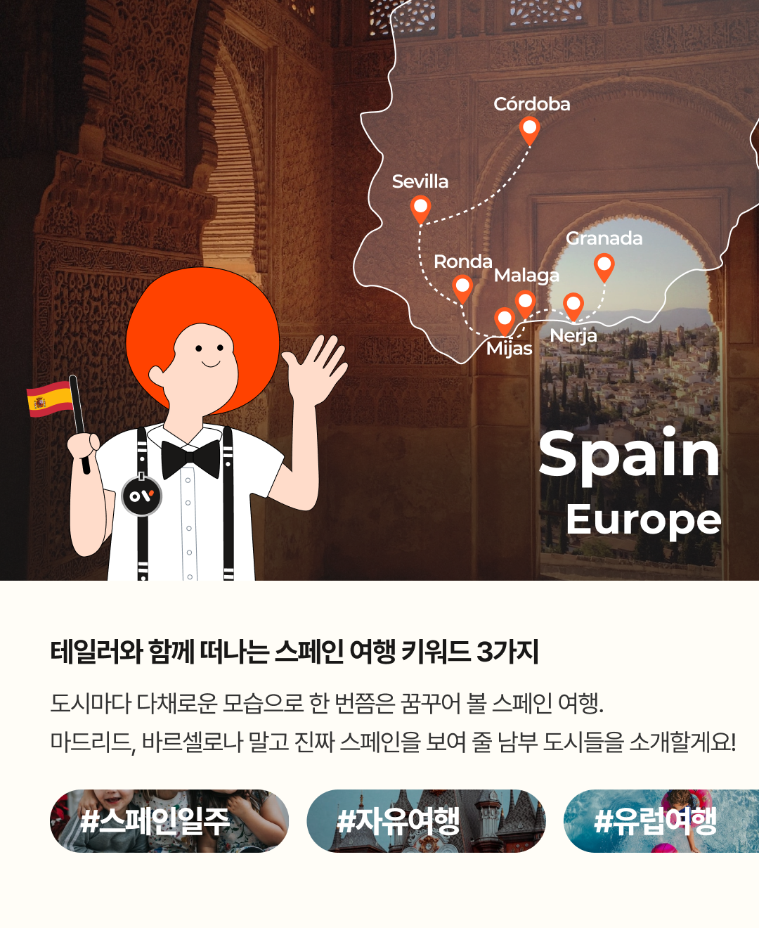 도시마다 다채로운 모습으로 한 번쯤은 꿈꾸어 볼 스페인 여행. 오늘 온베케이션 유럽 전문 테일러가 마드리드, 바르셀로나 말고 진짜 스페인을 보여 줄 남부 도시들을 소개할게요!