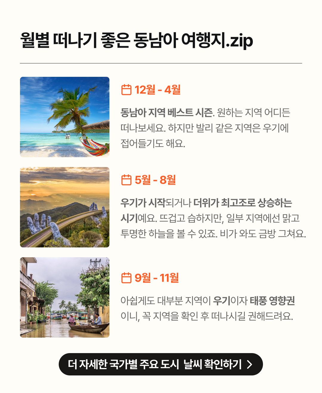테일러와 함께 동남아시아 월별 날씨를 확인했으니,