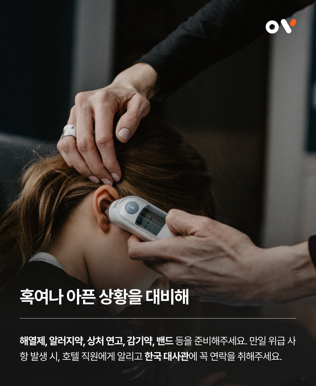 해열제, 알러지약, 상처 연고, 감기약, 밴드 등을 준비해주세요.