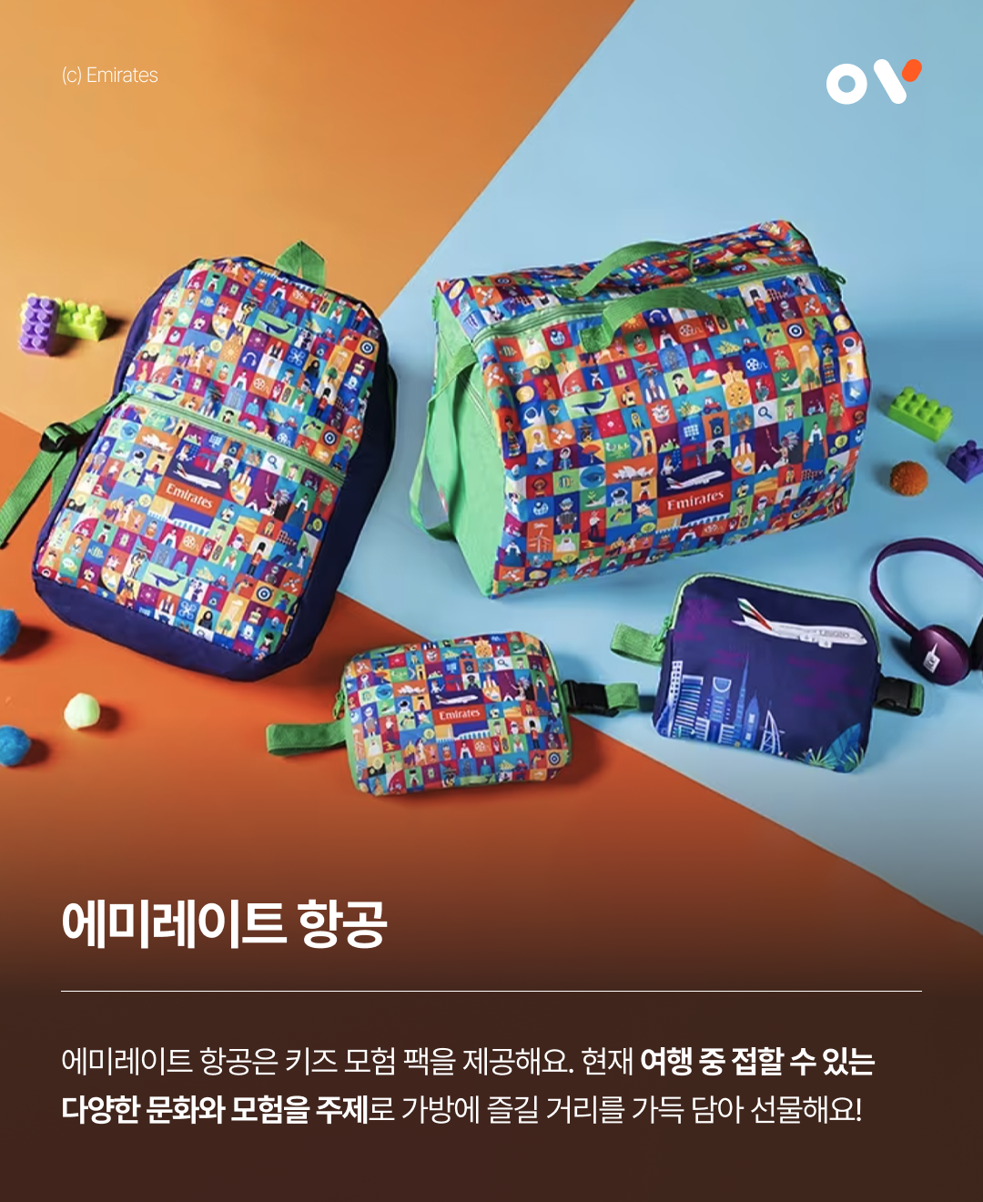 에미레이트 항공은 키즈 모험 팩을 제공해요.
