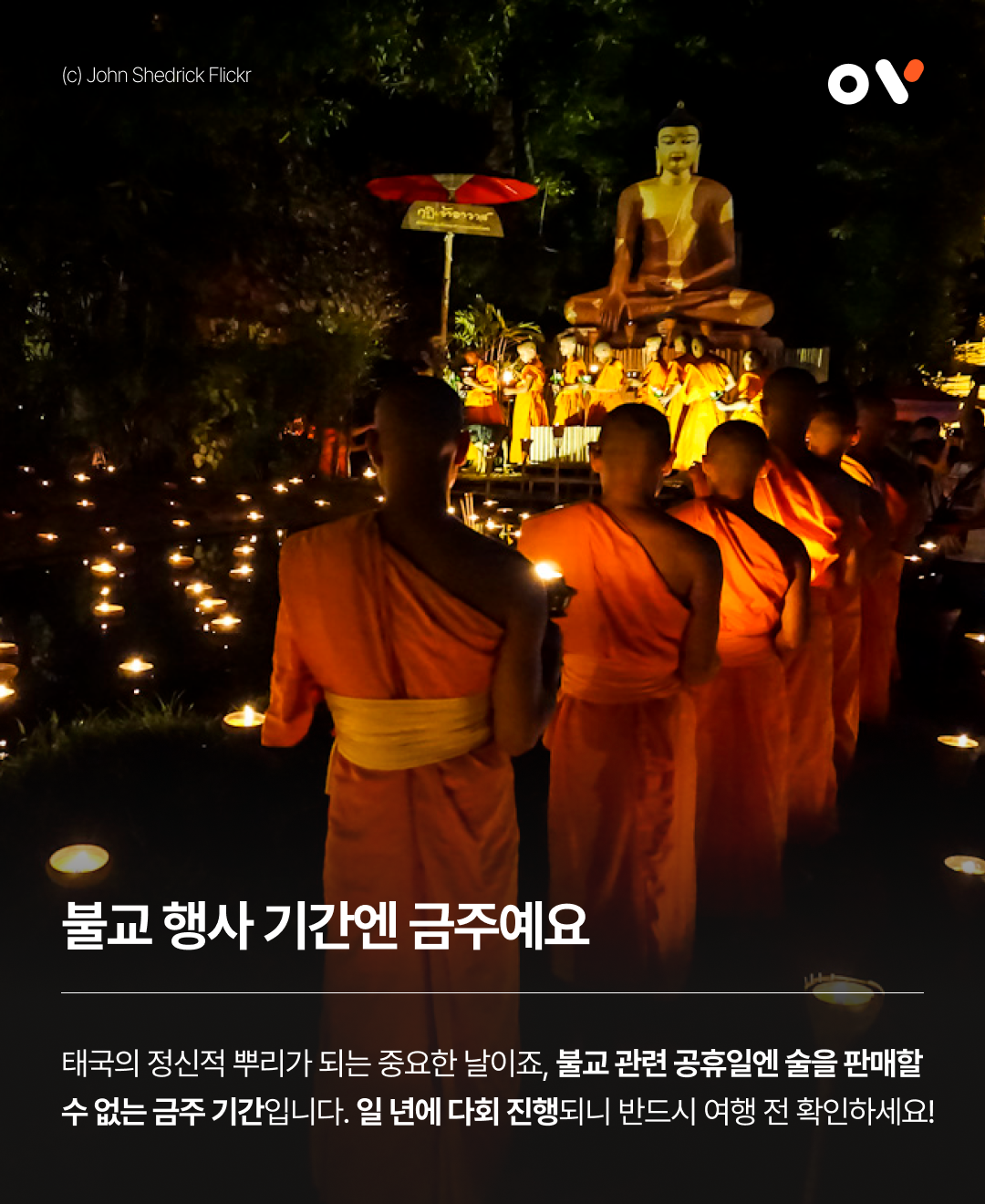 태국의 정신적 뿌리가 되는 중요한 날이죠, 불교 관련 공휴일엔 술을 판매할 수 없는 금주 기간입니다. 일 년에 다회 진행되니 반드시 여행 전 확인하세요!