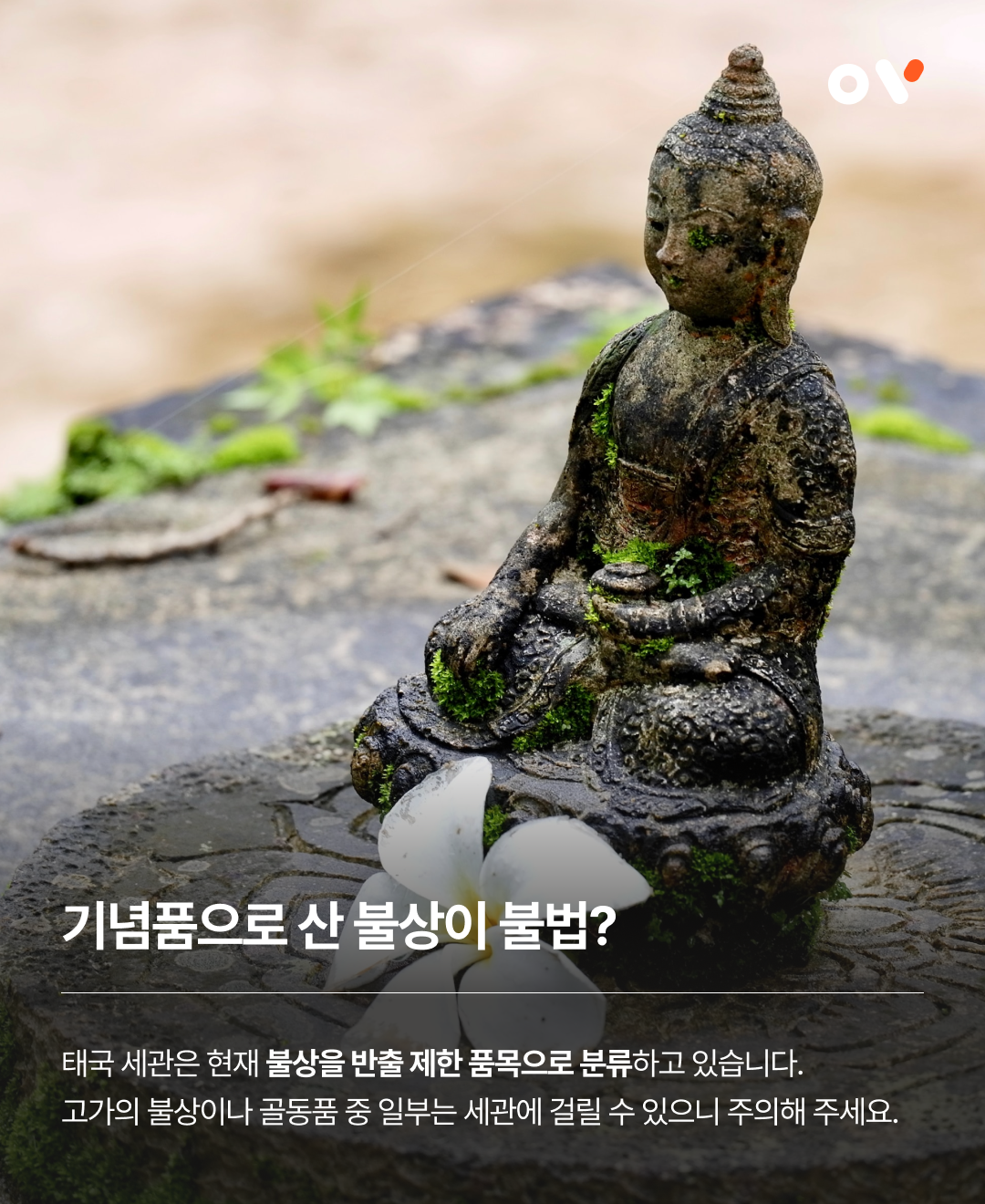 태국 세관은 현재 불상을 반출 제한 품목으로 분류하고 있습니다. 고가의 불상이나 골동품 중 일부는 세관에 걸릴 수 있으니 주의해 주세요.