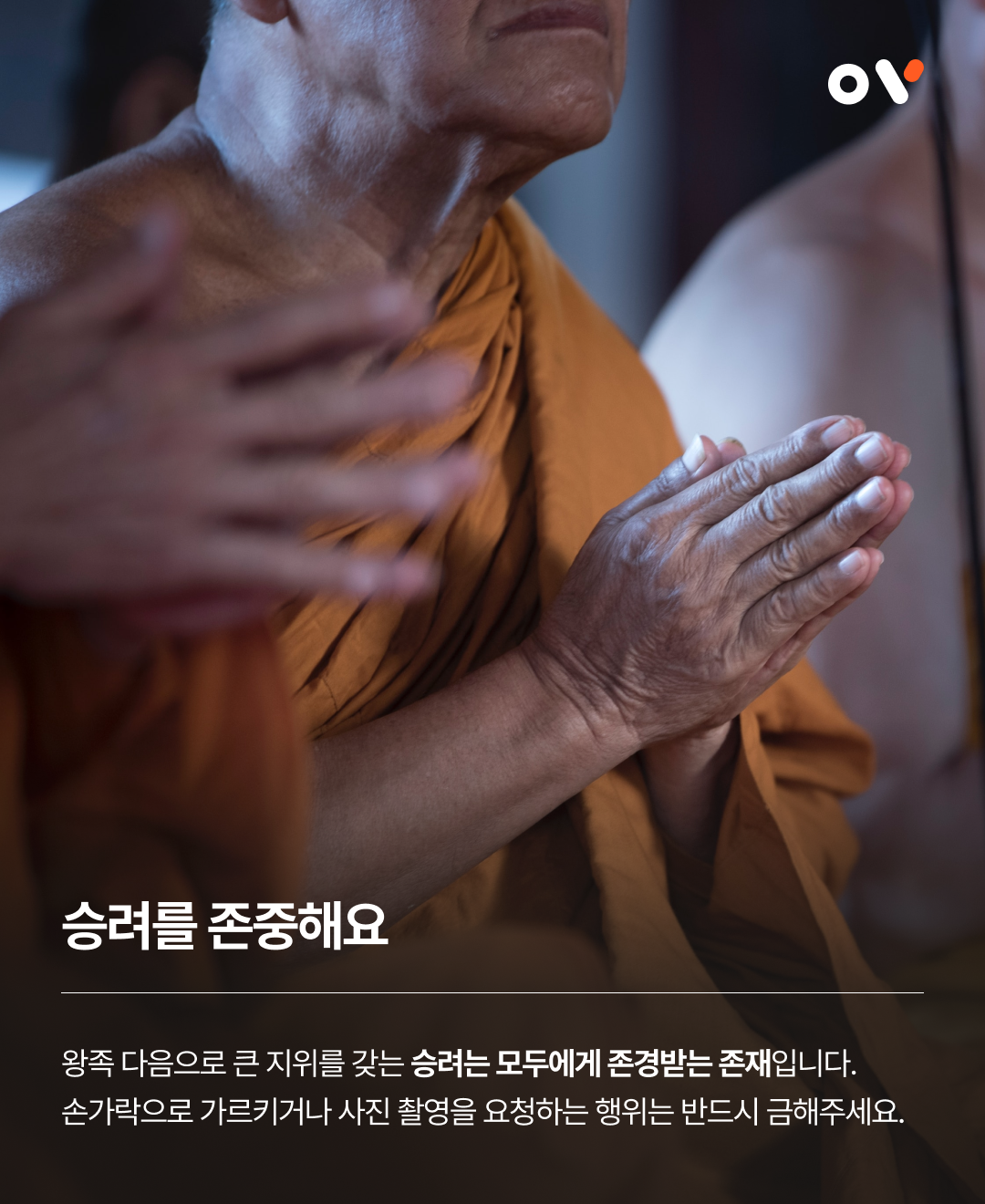 왕족 다음으로 큰 지위를 갖는 승려는 모두에게 존경받는 존재입니다. 손가락으로 가르키거나 사진 촬영을 요청하는 행위는 반드시 금해주세요.