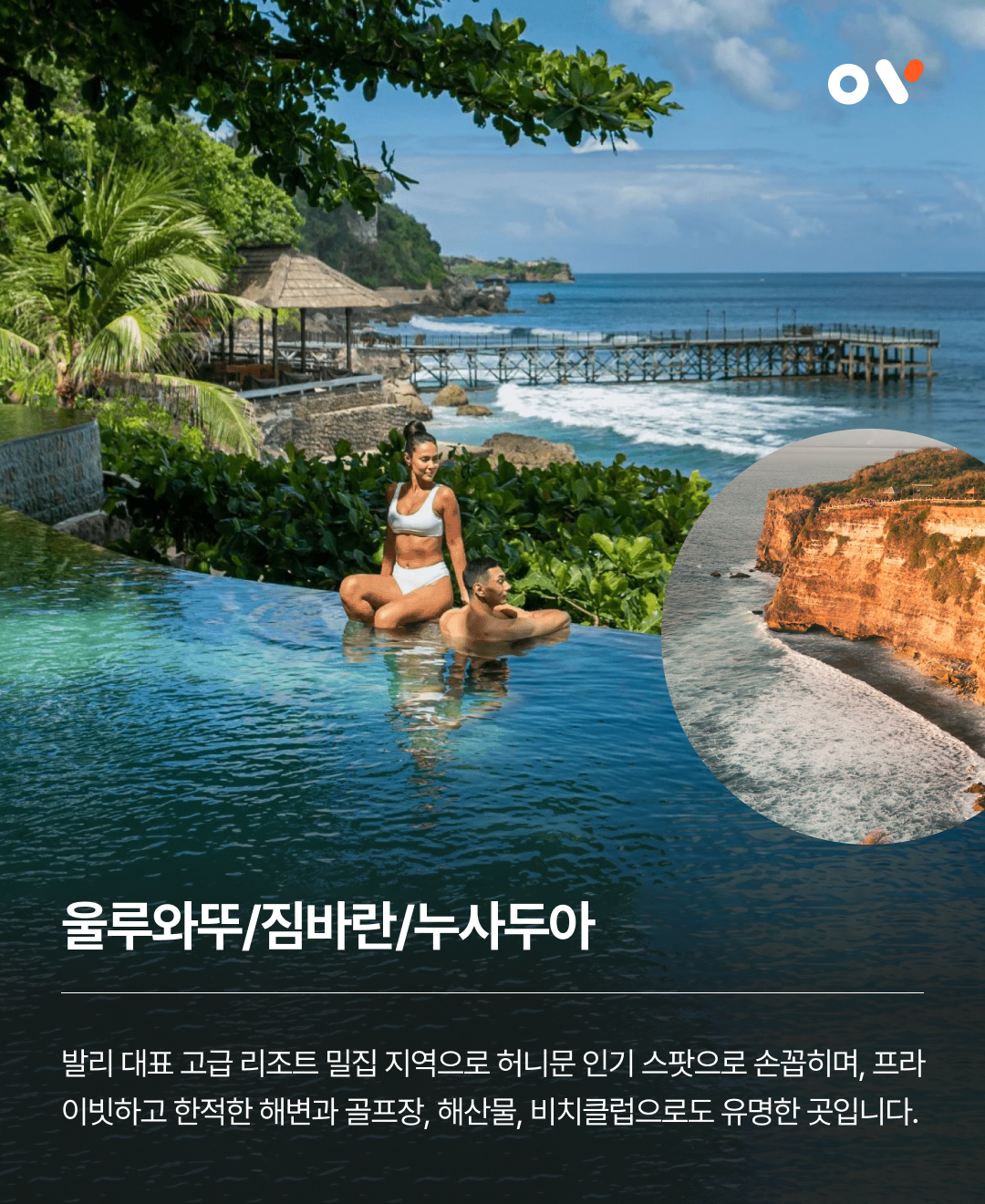 발리 대표 고급 리조트 밀집 지역으로 허니문 인기 스팟으로 손꼽히며,