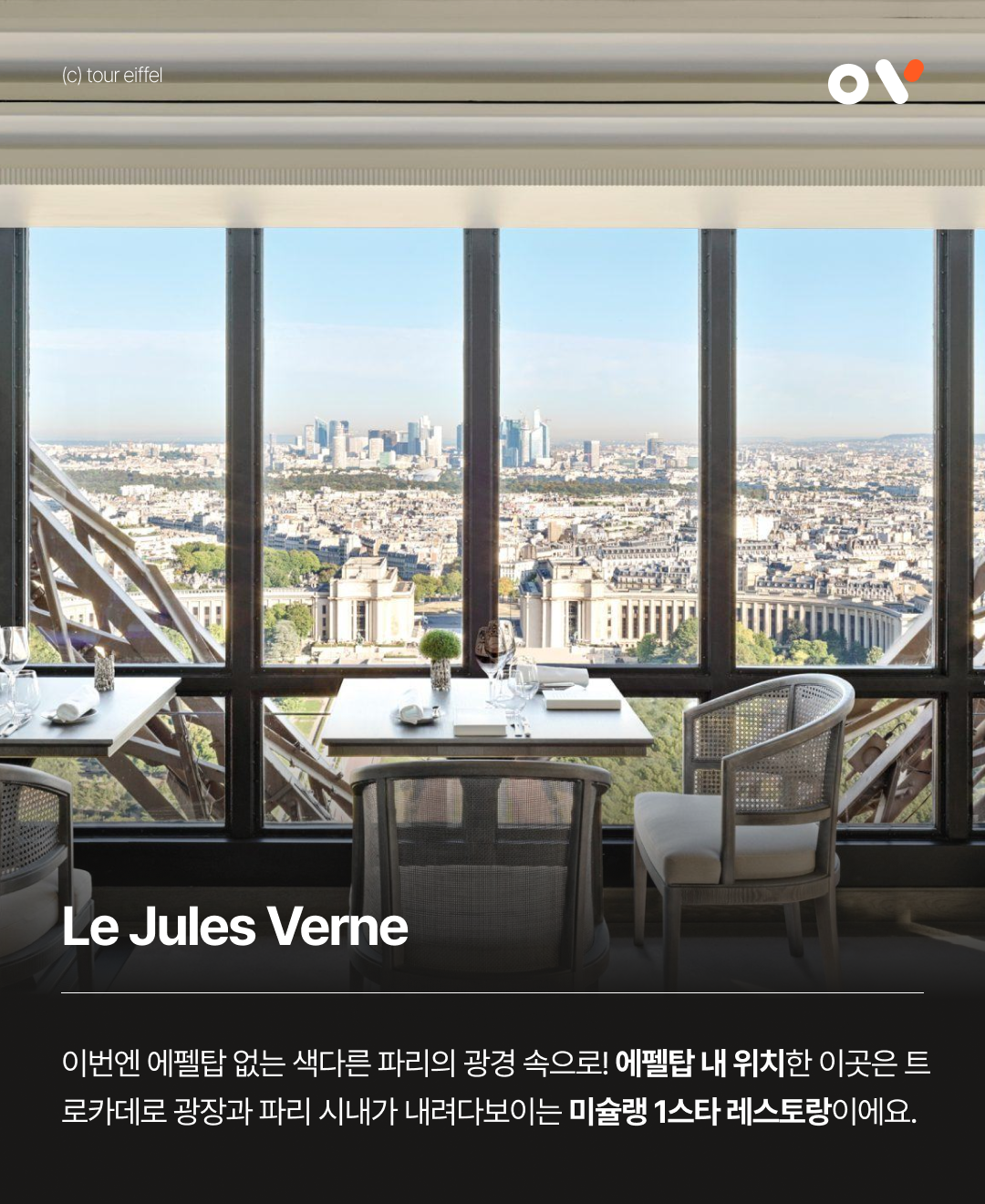 이번엔 에펠탑 없는 색다른 파리의 광경 속으로! 에펠탑 내 위치한 이곳은 트로카데로 광장과 파리 시내가 내려다보이는 미슐랭 1스타 레스토랑이에요.