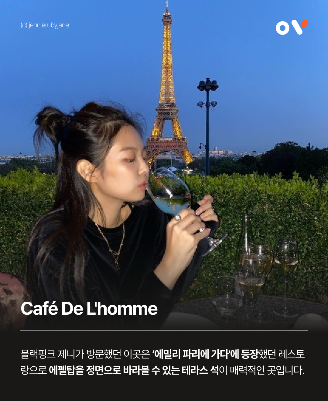 블랙핑크 제니가 방문했던 이곳은 ‘에밀리 파리에 가다'에 등장했던 레스토랑으로 에펠탑을 정면으로 바라볼 수 있는 테라스 석이 매력적인 곳입니다.
