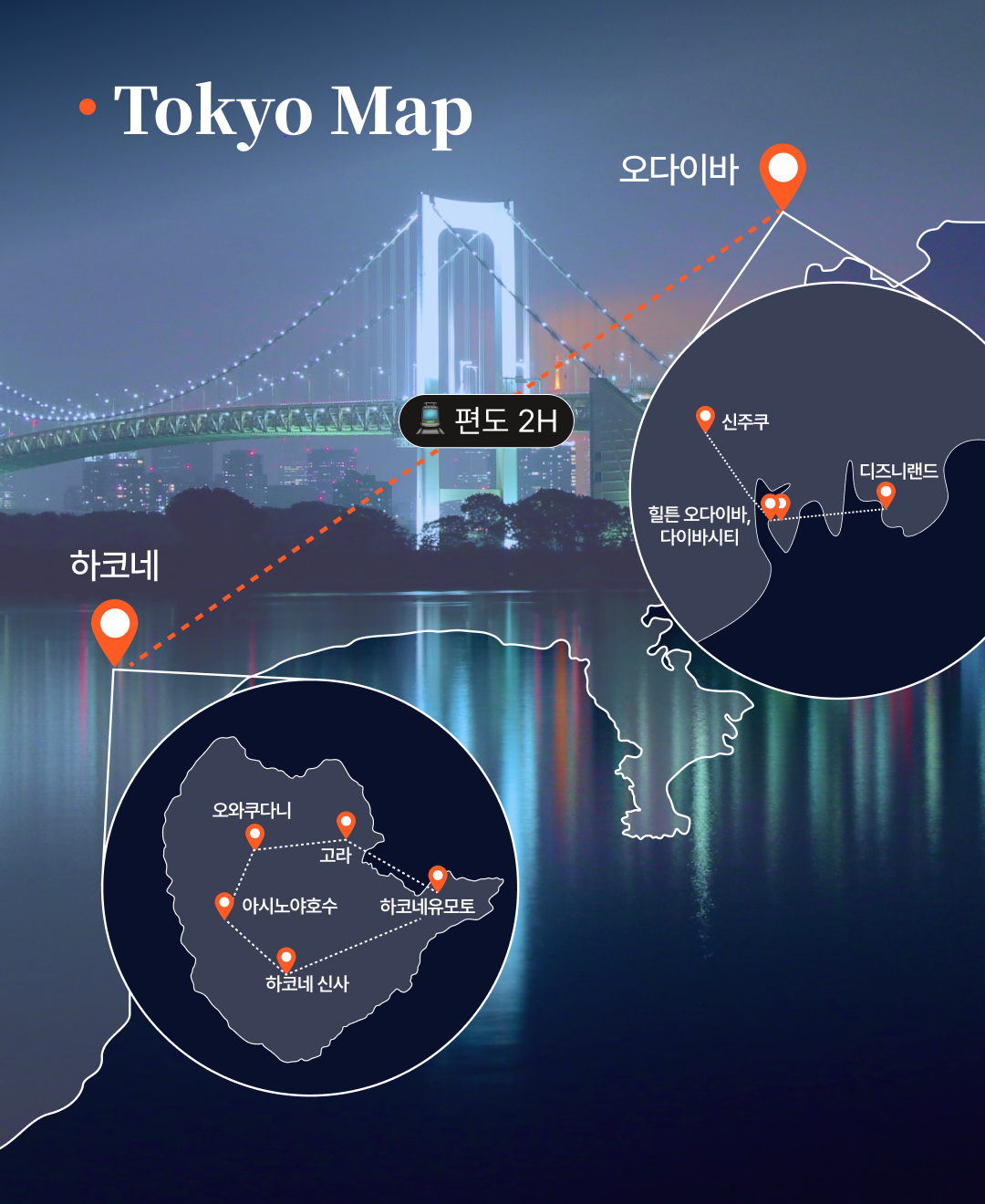 하코네에서 여유로운 시간을 보낸 후 오다이바 일대로 이동합니다.