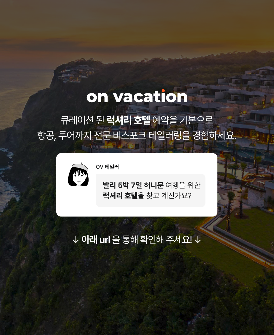 절벽 위에 위치한 이 리조트는 둘만의 로맨틱한 시간을 보내기에 최적의 럭셔리 리조트입니다.