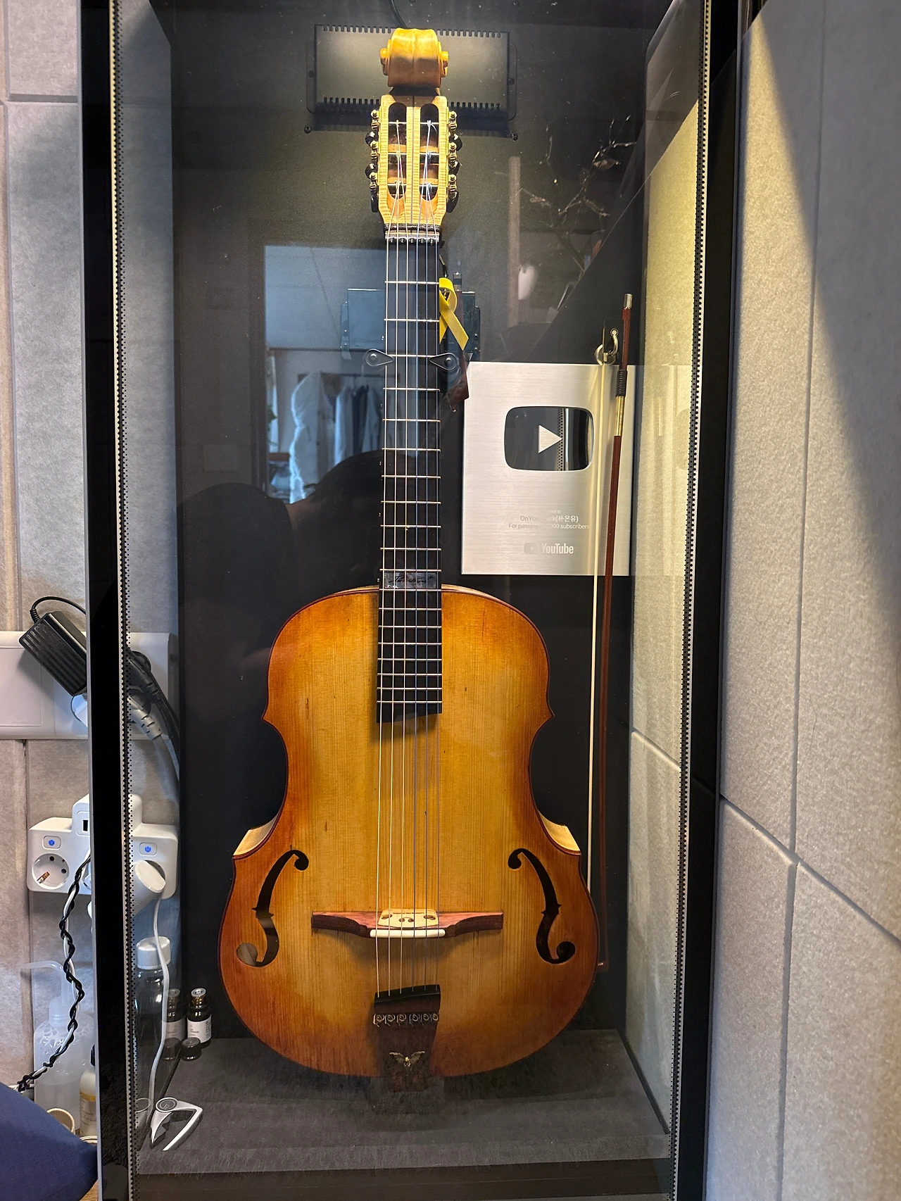 몸체에 신체를 닿지 않게 하고 오직 네 지점의 바인딩만 고정해 공중에 띄워 연주해야 하는 그 이질적인 존재.