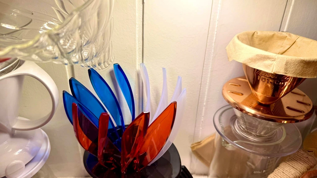 하리오 사 에서는 이 드리퍼를 연꽃에서 영감을 받아 제작했다고 설명한다. 그리고 총 여섯 가지인가 무튼 꽤 많은 색의 리브를 구매할 수 있다.