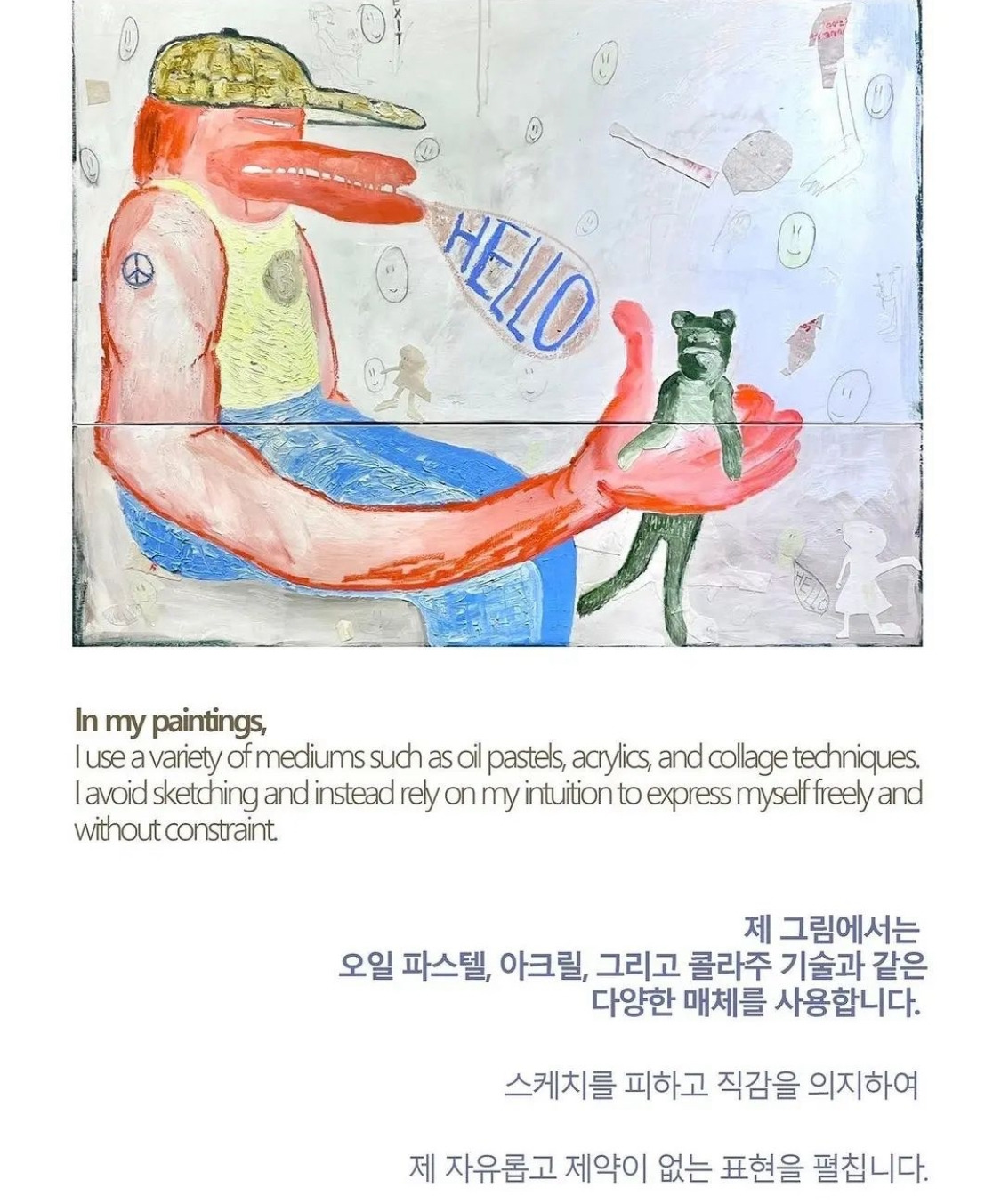 제 그림에 대한 호불호가 좀 강해요. 집에 걸기에 좋은 그림은 아니라서요. 저는 추상화를 그리고 싶지만, 지금은 내가 그릴 수 있는 그림을 충분히 그리고 씻겨낸 후에 비로소 진정한 나만의 추상화로 넘어갈 수 있을 것 같아요.