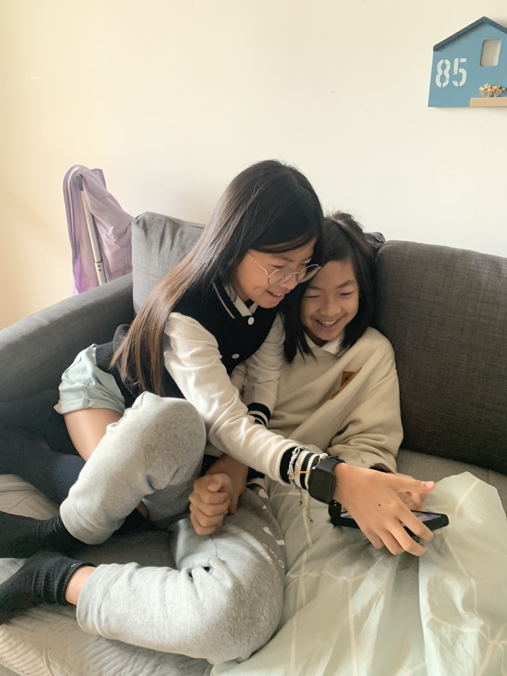 아직 등교시간까지 10분 정도 남았다. 두 아이는 여유롭게 소파에 앉아 수다를 떤다.