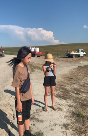 덥다고 짜증을 부리던 아이들은 사라지고, 성큼성큼 밀밭 언덕으로 올라가기 시작했다. 언덕 끝에 올라 하늘을 보며 아이들이 탄성을 내질렀다.