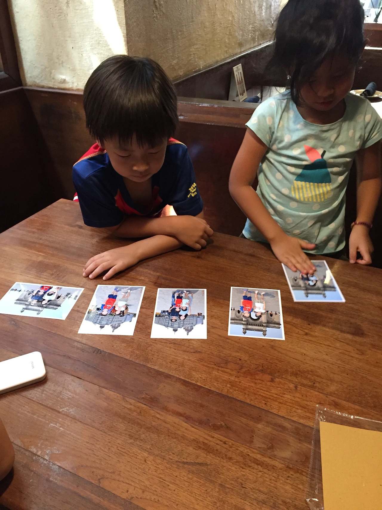 얼굴이 벌겋게 달아오른 아이들 손을 잡고 근처 카페에 들어가 시원한 음료수를 마셨다. 그리고 아저씨가 찍어준 사진을 보는데.....