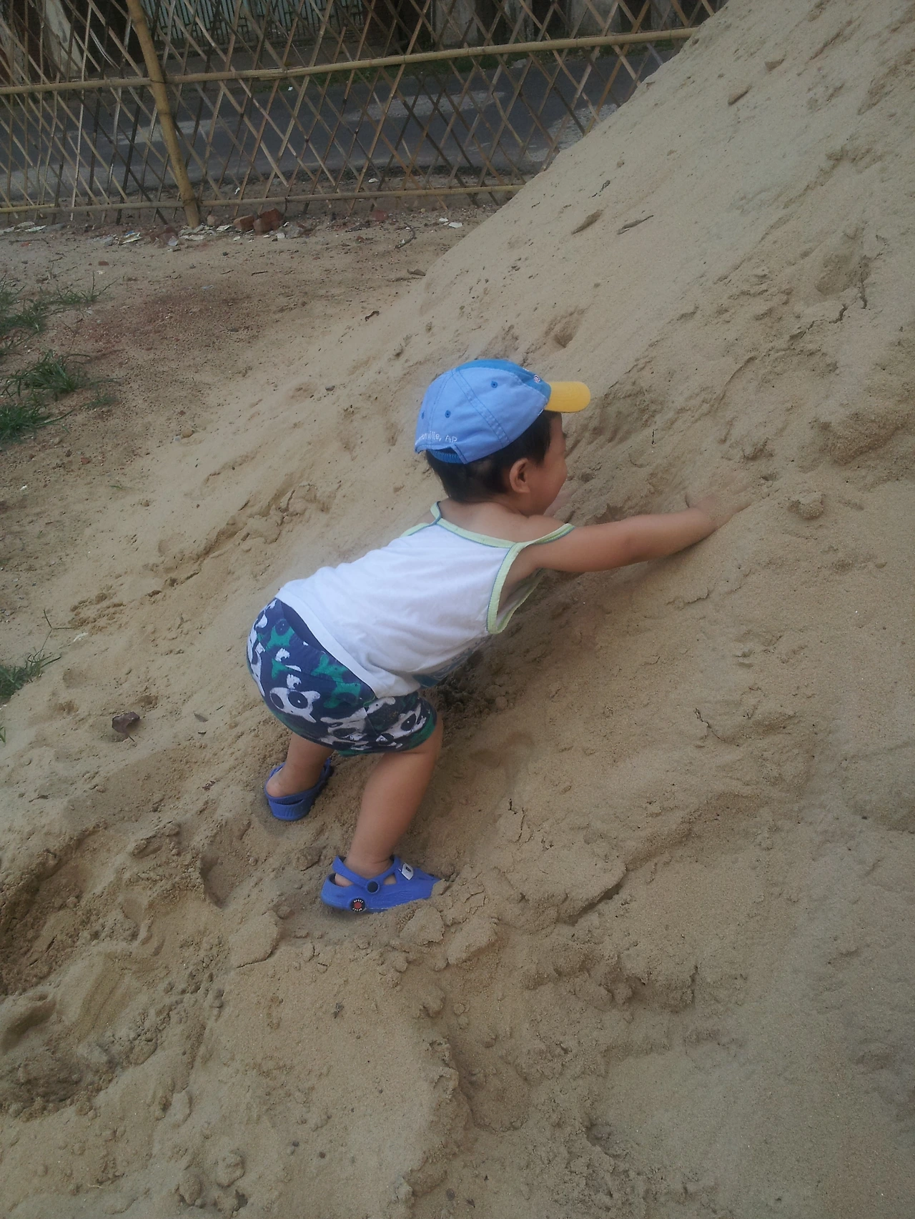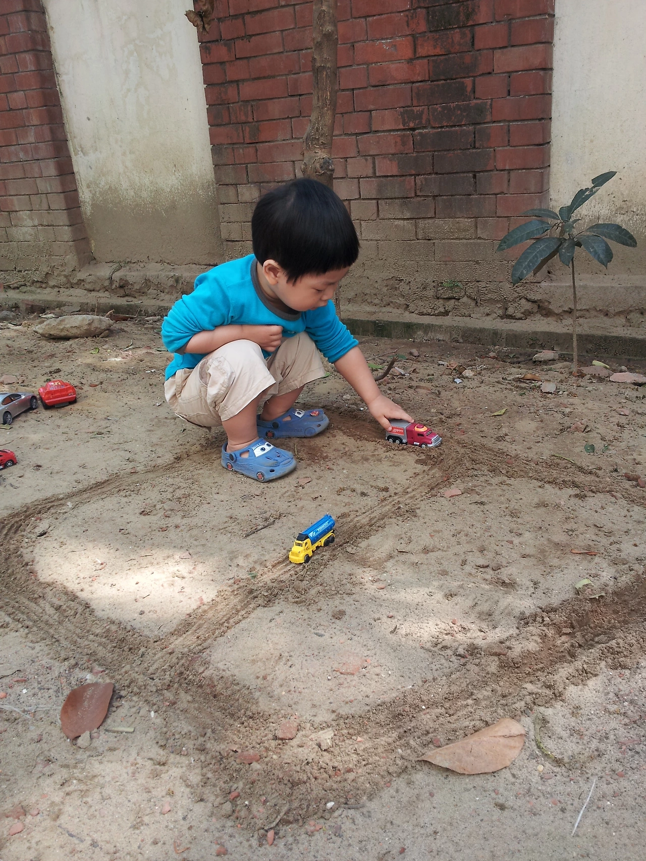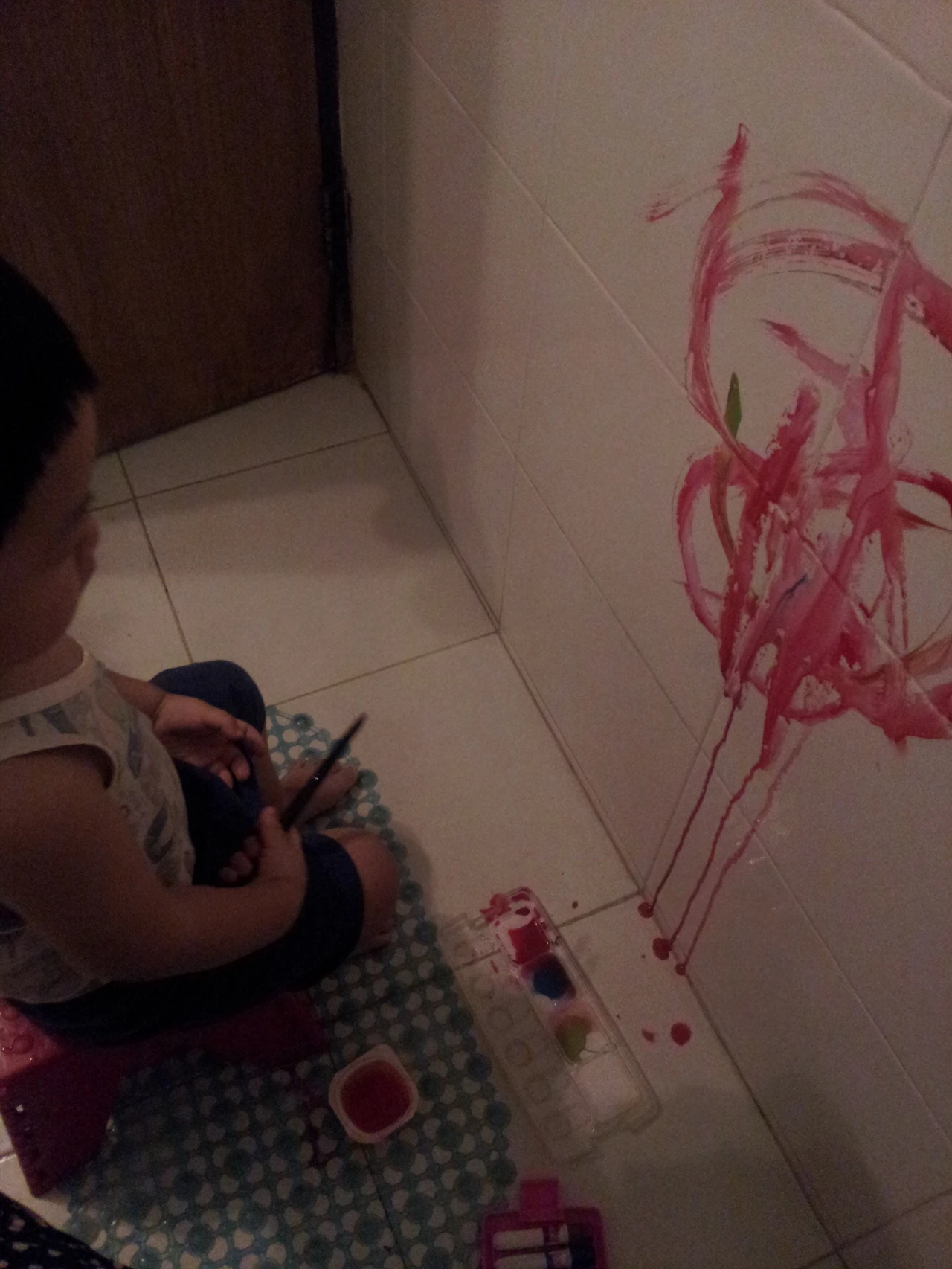 둘째 소은이를 유모차에 태우고, 첫째 지안이 손을 잡고 쿨시 이곳 저곳을 돌아다녔다. 공사장 모래밭에 철퍼덕 앉아 모래 놀이를 하고, 미니 자동차를 들고 나와 자동차 놀이를 했다. 땀이 뻘뻘 나는 더운 날씨임에도 불구하고 우리는 날마다 밖으로 나갔다. 그렇게 바깥 놀이를 하면 10분만에 땀으로 온 몸이 흠뻑 졌었다. 땀과 흙으로 범벅이 되어 돌아와 물놀이를 했다. 물놀이하는 종종 물감과 붓을 주어 욕실 벽에 마음껏 그림을 그리며 놀게 했다. 어린 두 아이를 데리고 해외에서 지내는 것이 힘들기는 했지만 점점 적응이 되었다.