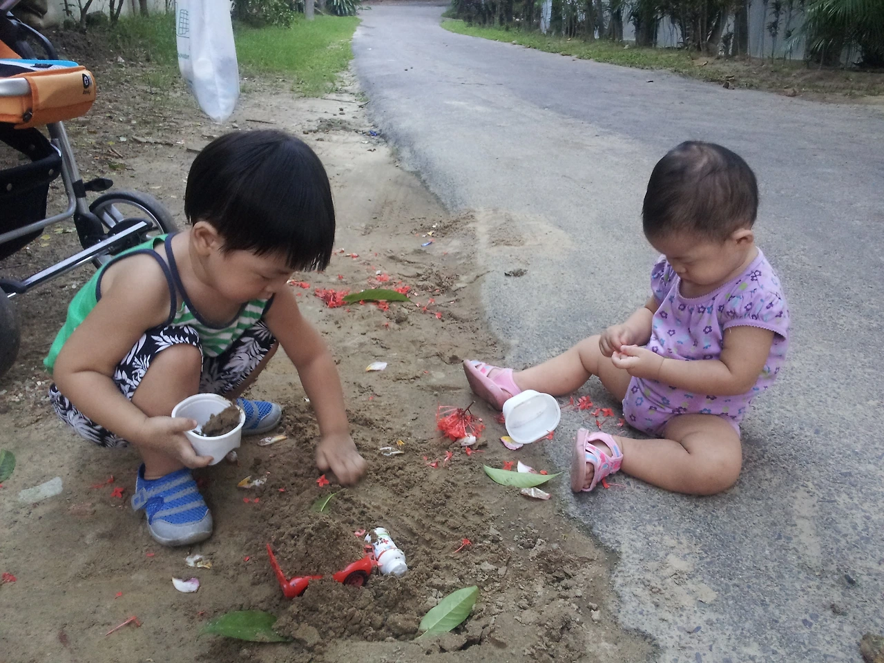 자주 아이들을 데리고 집 밖에 나가 공사장 근처에 쌓여 있는 모래 옆에서 놀곤 했다. 지안이는 모래 옆에서 자동차 놀이도 하고 모래 놀이도 하며 놀았다. 소은이가 혼자 앉을 수 있을 때 즈음엔 소은이도 모래밭에 철퍼덕 주저 앉아 함께 모래놀이를 하곤 했다. 하지만 이내 소은이의 입 주위는 모래로 가득 묻어 버렸다. 모든 것들을 입으로 맛보고 확인을 해야 하는 아이였다. 모래와 흙, 응가까지도 맛을 본 소은이는 다행히 지금까지 큰 병에 걸리지 않고 건강하게 지내고 있다.