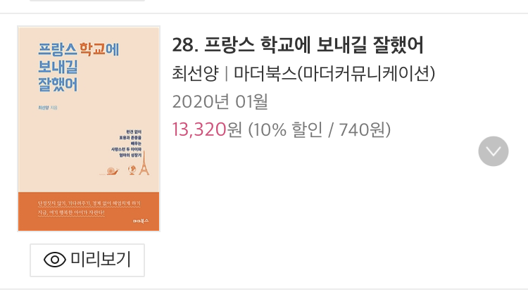 오늘 아침엔 알라딘에서 좋은 부모/육아 교육 분야 28위를 했어요. 얼마나 기쁘던지요. 제가 해외에 있기 때문에 적극적인 홍보도 못하고, 노출도 많이