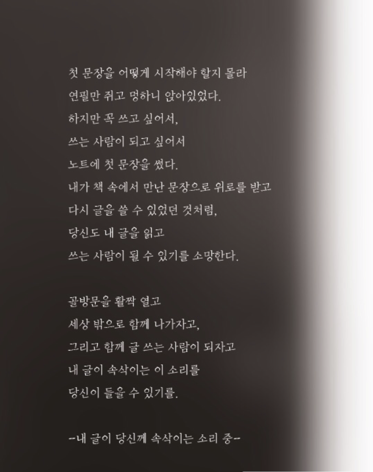 처음엔 글쓰기에 대한 솔직한 마음을 브런치에 쓰고자 했다. 잘 쓰는 방법을 알려주는 사람은 많으니, 잘 못쓰는 사람이 쓰는 글에 대해, 해외에 살기에 글쓰기 모임 한번 해보지 못했고, 호기롭게 글쓰기 모임을 만들려다 카페에서 강퇴 당한 어리숙한 사람에 대해 쓰고 싶었다.