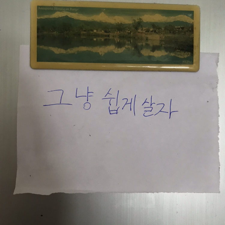 우리 집 냉장고와 베란다엔 여전히 “그냥 쉽게 살자.”가 붙어있다.
