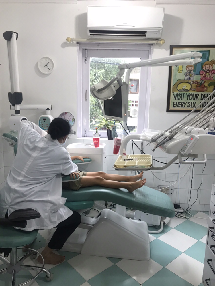 치과는 생각보다 더 작았다. 3층짜리 단독주택 건물 1층에 위치한 치과에는 치과 체어가 달랑 하나 놓여 있었고, 직원은 아무도 없었으며, 중년의 여자 의사 선생님이 혼자 모든 일을 하고 있었다. 순간 덜컥 겁이 났지만, 이미 때는 늦었다. 이미 큰아이가 체어에 누워 있었다.