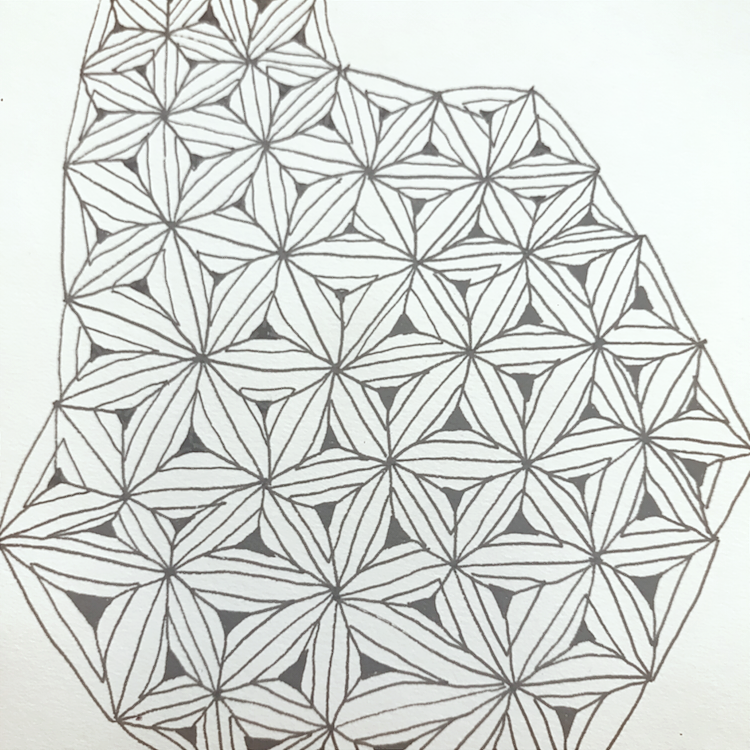 FASSETT 패턴은 내가 가장 좋아하는 패턴이다. 텅텅 비어 있는 여백에 세모를 그리고 그리다 보면 어느새 화면이 가득 차게 된다. 그 세모들을 연결하고 연결하면 매우 평범했던 존재가 어느새 예쁜 꽃이 되어있다.