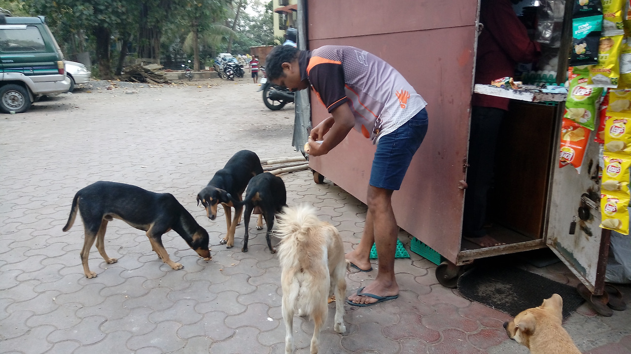 "사진 좀저씨는 여기서 비스켓을 사더니 멍멍이들에게 나눠주었다.