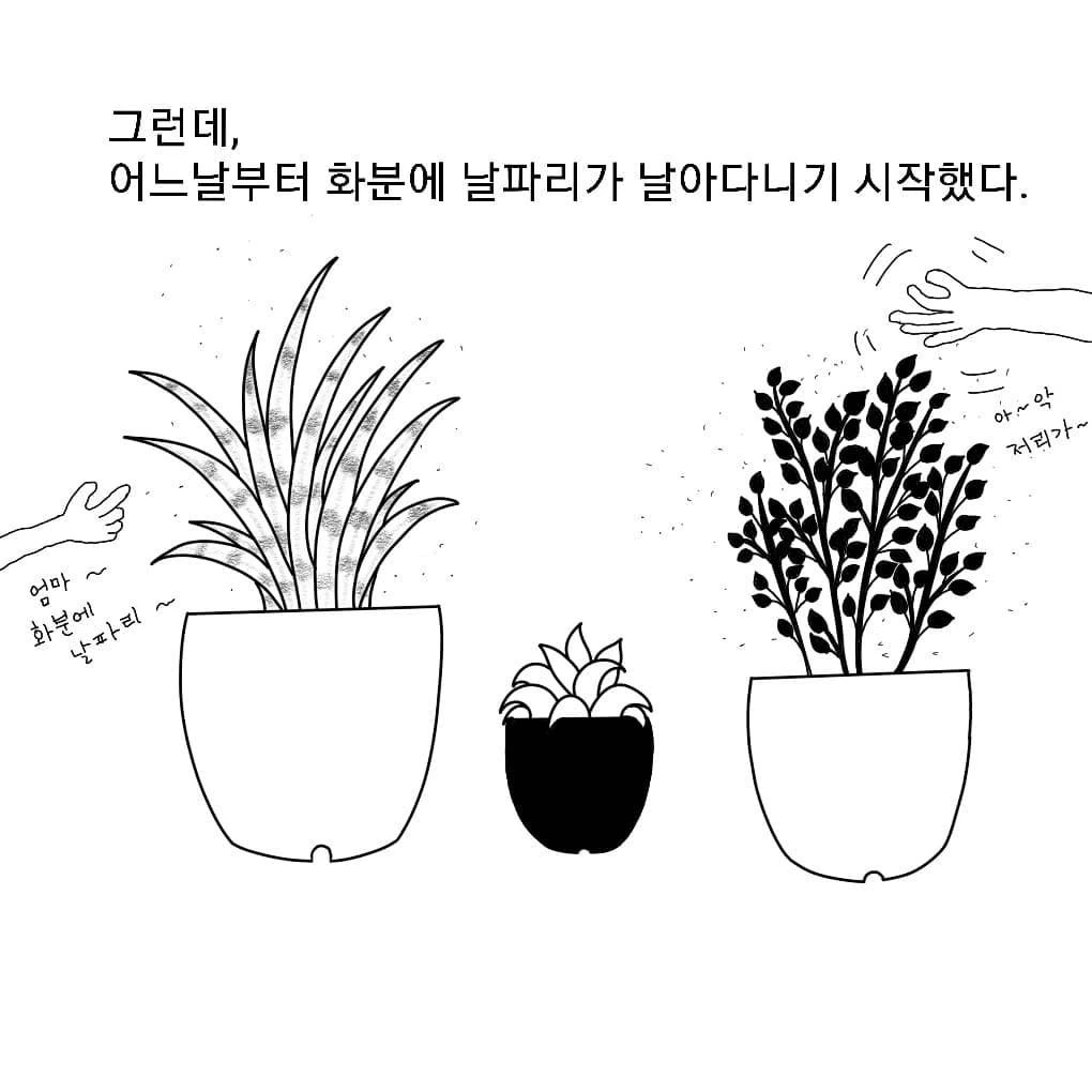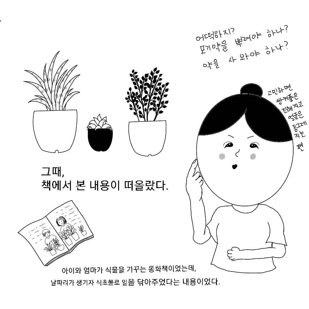 아이들과 자주 동화책을 읽었었는데 그 책에도 식초물이 나와있었다. 수건에 식초물을 조금 적셔 이파리를 닦아주면 날파리와 벌레가 사라진다는 내용이었다.