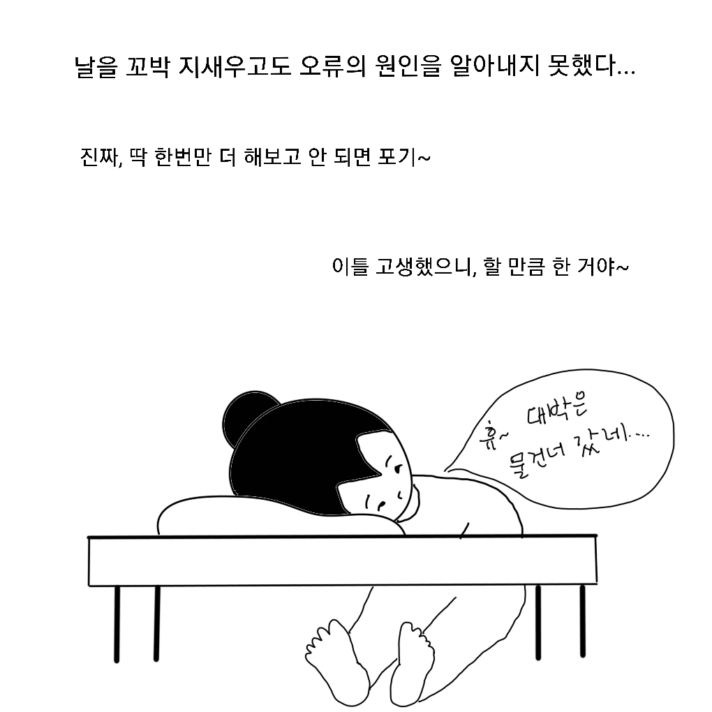 결국, 될 때까지 하고 또 하다 꼴딱 날을 샜다.