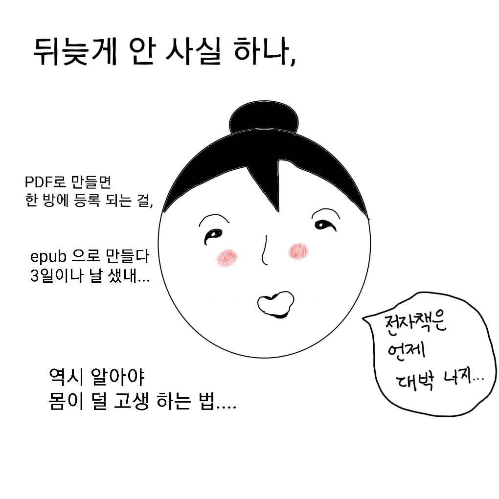 이제 그만 포기할까? 고민하다, 전자책이 대박 날 수도 있잖아!! 하는 생각이 들어 벌떡 일어났다.
