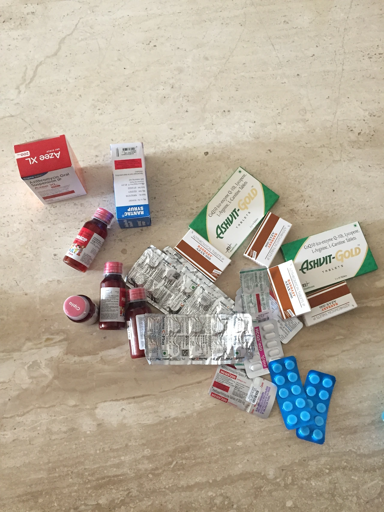 인도는 의사 처방전이 없어도 약 이름만 알면 구입할 수 있다. 지인 중 한 명이 이주 전 즈음 코로나에 걸렸다가 회복되었는데, 그때 복용했던 약이라고 했다. 이번 코로나 변이 바이러스는 젊은 사람들 특히 아동 감염률이 높다. 그래서 아이들이 먹을 시럽도 함께 사 오도록 했다.