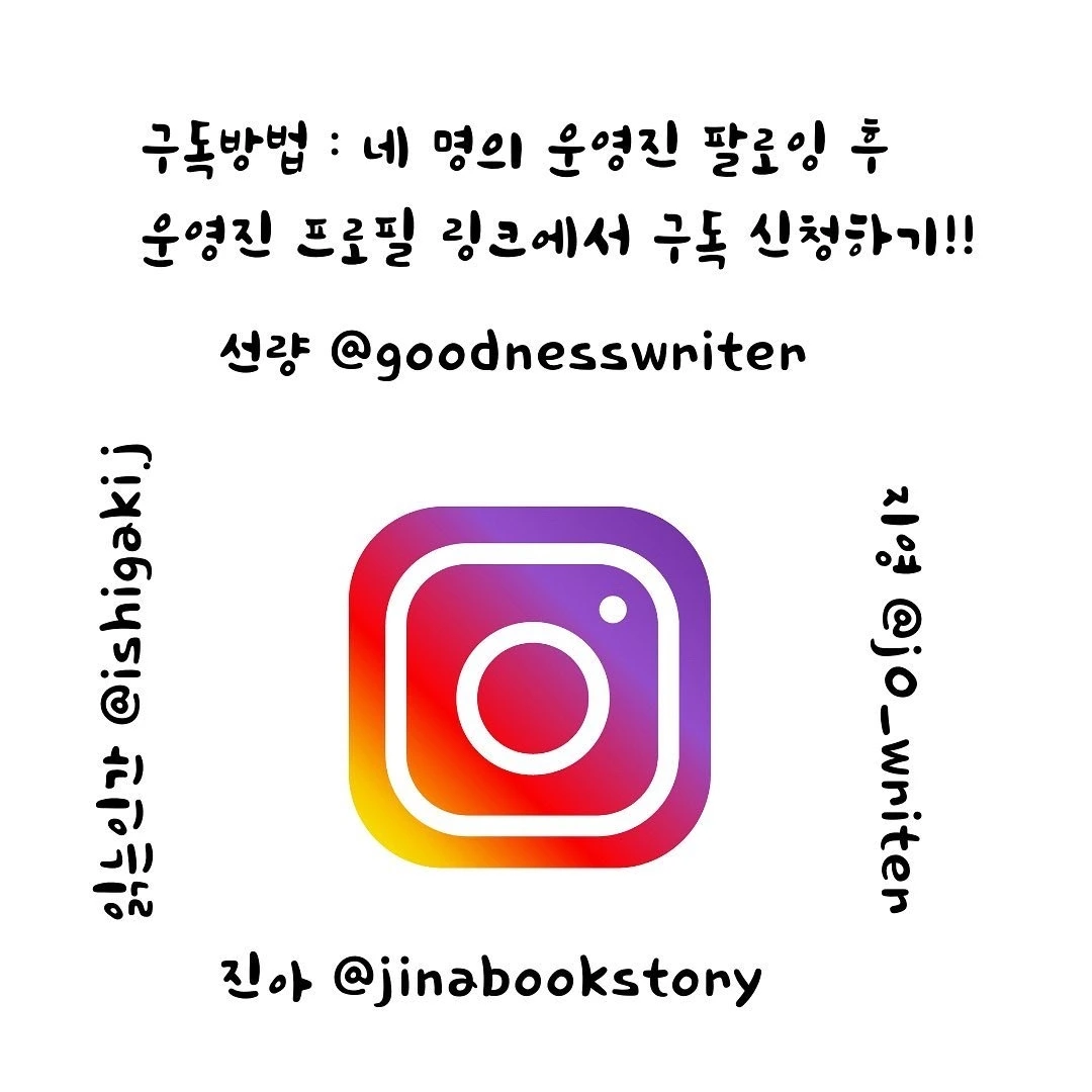 인스타그램에서 @goodnesswriter 를 검색하시거나 “선량”을 검색하신 후 팔로잉, 제 프로필 링크에서 신청해주세요.
