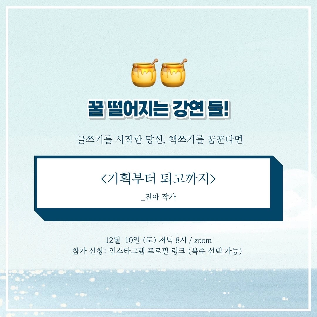 *진아 * 12월 10일 “글쓰기를 시작한 당신, 책 쓰기를 꿈꾼다면” <기획부터 퇴고까지>