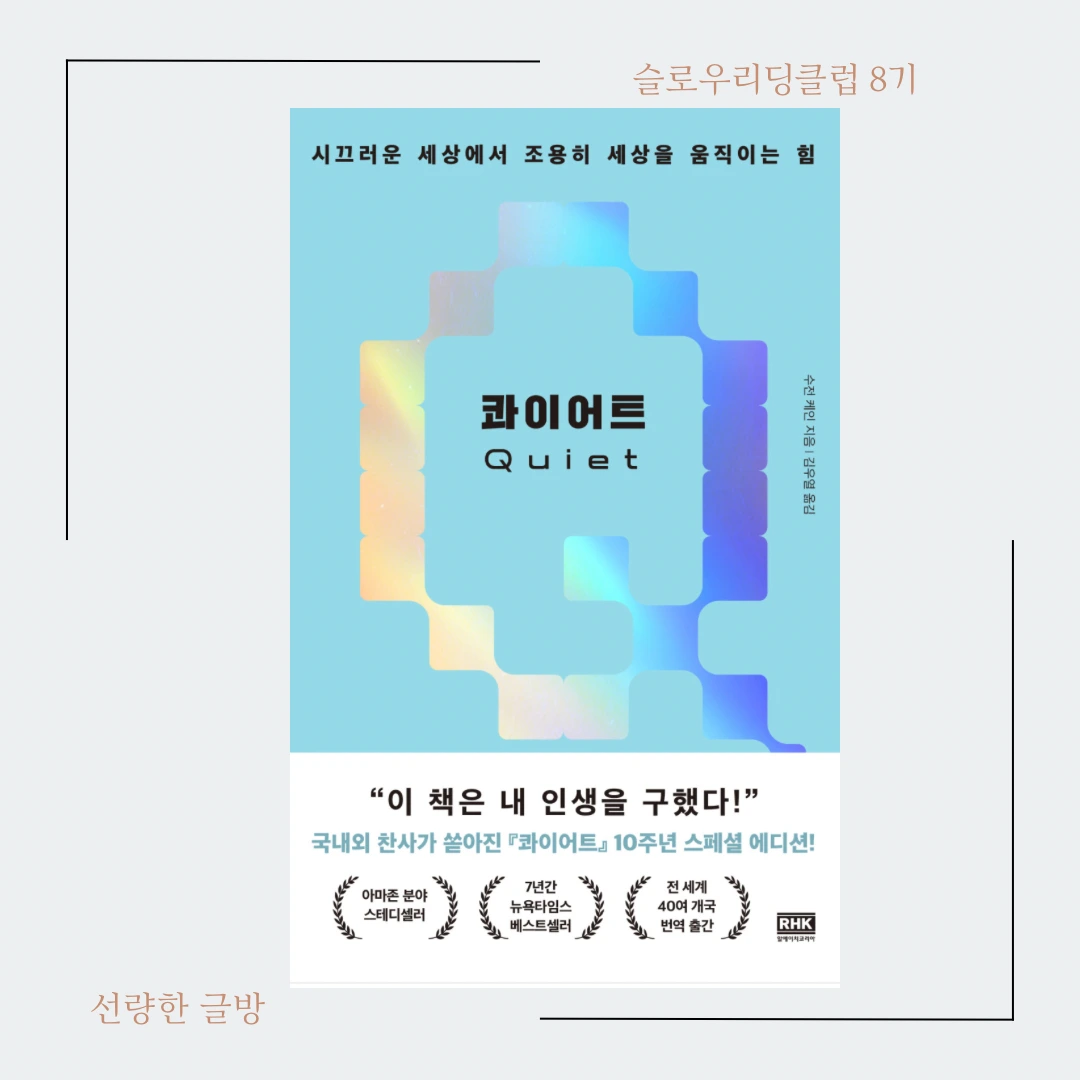 수전 케인의 콰이어트를 읽고 쓴 에세이를 수정한 내용입니다.
