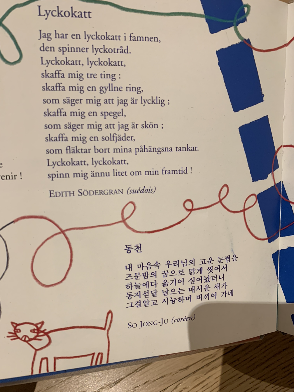“Tour de Terre en Poésie “라는 책에는 50개의 다양한 문화의 시가 자국어와 프랑스어로 번역되어 담겨 있었다.