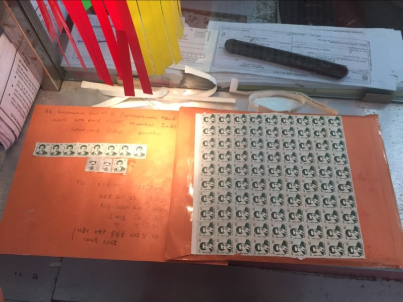 난 소포를 보여주며 한국으로 보낸다고 말했다. 우체국 직원은 내 소포의 무게를 측정하더니, 어마어마한 양의 우표를 주었다.
