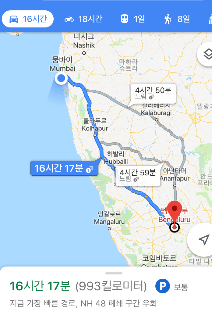 비행기로 2시간 정도 걸리는 그지역은 뭄바이와는 또 다른 모습이라고 한다. 작은 소도시이고 일 년 내내 기온이 비슷해 살기가 매우 좋다고 한다. 거기서 뭄바이까지 차로 오려면 16시간이 걸린다.