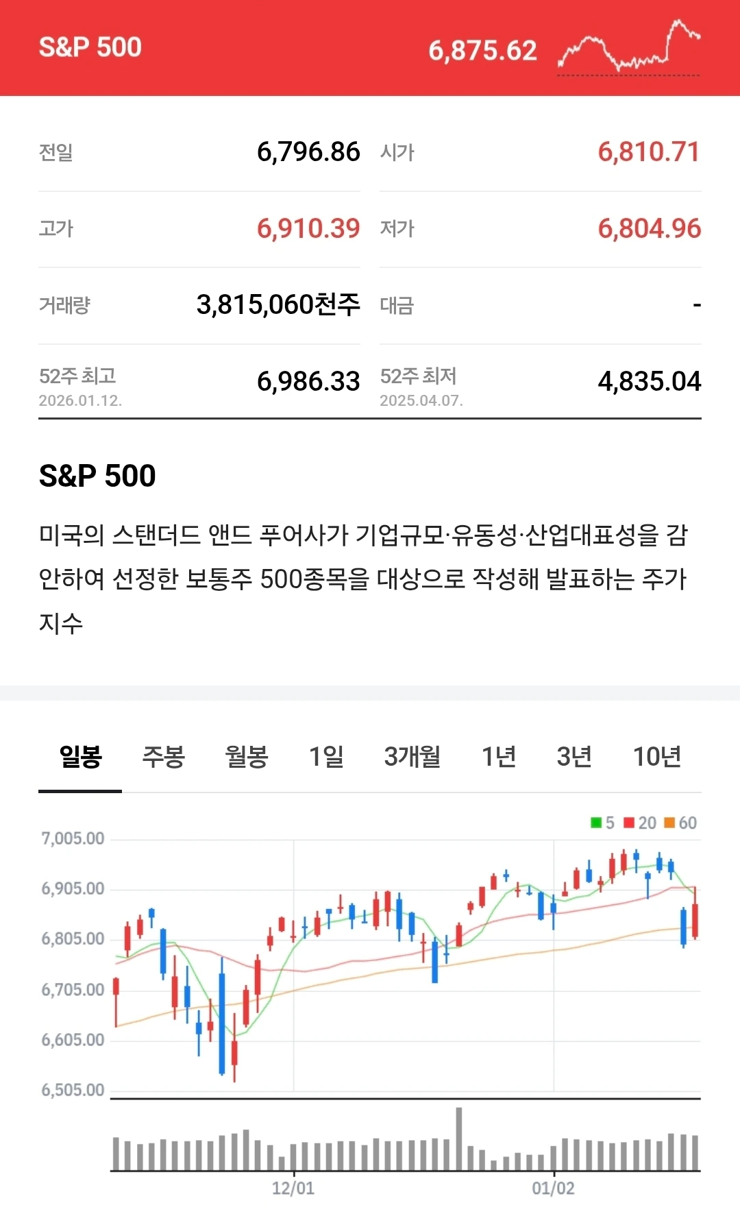 미장은 어제 트럼프가 갑자기 관세와 그린랜드 전쟁 위협으로부터 물러서는 입장을 표명하며 반등했으며 금, 은, 빅스 지수는 하락했습니다. 방산주도 하락세인데 얼마 못 가서 언제든지 폭탄 발언이나 위협적인 스탠스를 취할 수 있기 때문에 저가매수의 기회가 될 수 있지 않을까 싶은 생각도 듭니다. 실제로 캐나다는 미국과의 전쟁 시나리오까지 돌리며 대비하고 있어서 무력 충돌이 일어날 가능성은 극히 적지만 위기감은 한동안 지속될 것으로 보입니다. 어제 뉴욕발 훈풍으로 5000p를 넘긴 코스피의 흐름을 미국도 이어 받는다면 S&p500의 7000p 돌파를 이번 주에 기대해봐도 좋을 것 같습니다.