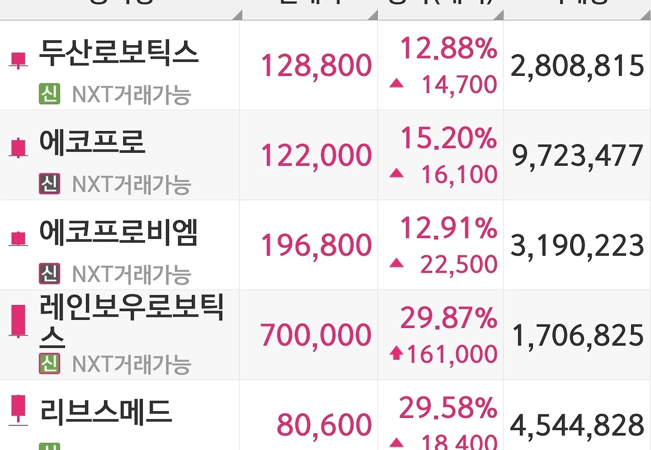 오늘 레인보우로보틱스를 비롯해 몇몇 로봇 관련 주들은 상한가를 치거나 두 자리수대 급등했습니다. 바이오쪽도 크게 상승했는데 내일도 연일 신고가를 경신할지 아니면 상승분을 반납할지 궁금해지네요. 참고로 코스닥은 3000p 이야기가 나오고 있어서 코스피가 5000p까지 오른 것처럼 비교적 시장 규모가 작은 코스닥도 순식간에 2~3000p까지 가는 게 아닐까 싶습니다.
