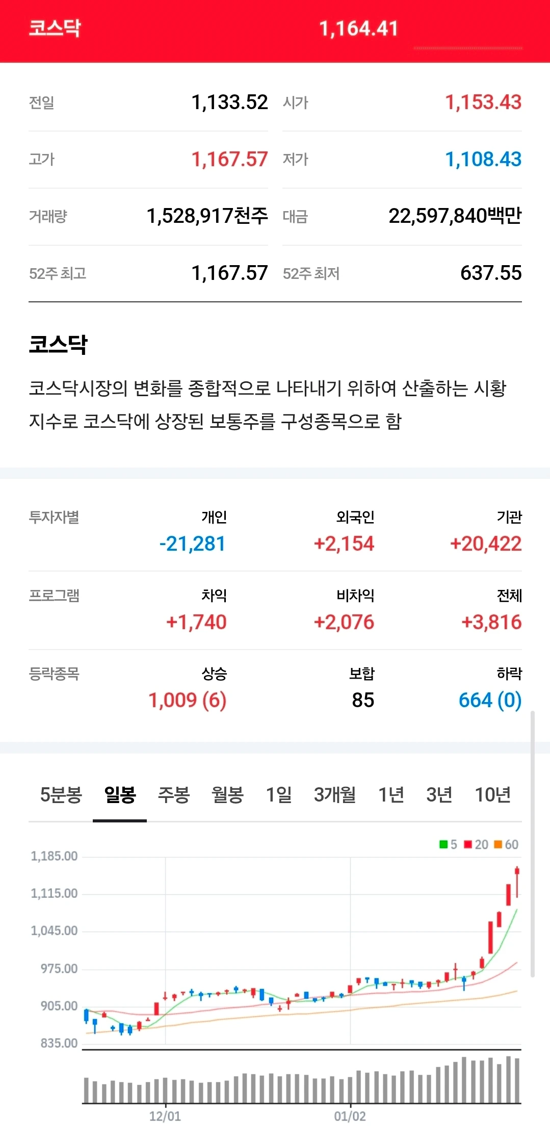 레인보우로보틱스 시총이 최근에 몇 배 늘어서 14조인데 sk하이닉스는 자사주 12조를 소각한다고 하니 100만닉스는 시간 문제로 보입니다. 최대 수혜주 sk스퀘어도 연일 동반 상승하며 sk그룹 가치를 올려주고 있네요. 외국인과 기관 자금이 코스피에서 코스닥으로 지속적으로 넘어가며 순환매를 보이고 개인은 코스닥에서 코스피로 넘어오는 흐름이네요. 아마 코스닥에서 물려 있던 개미들의 자금이 안정적인 코스피로 이동하는 것 같습니다.