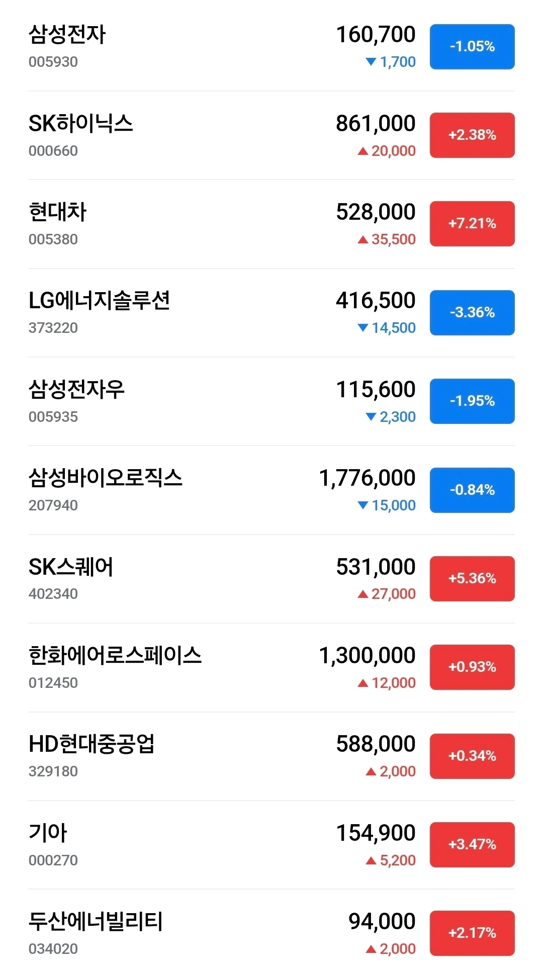 어떤 종목을 투자할지 잘 모르시겠다면 코스피와 코스닥 상위 20개 종목들을 섹터별로 적절히 섞어보시길 권장합니다. (반드시 ai, 방산, 조선, 에너지, 바이오와 같은 유망한 분야를 섞어야)