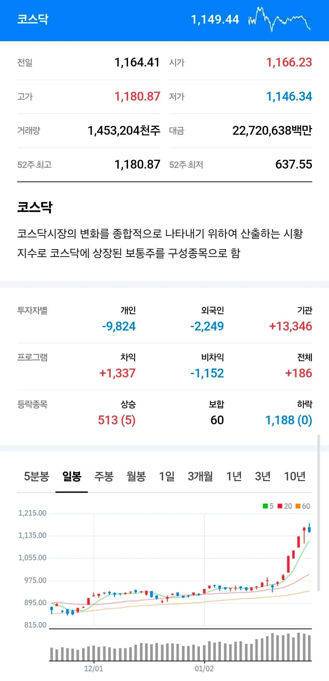 오늘 코스피는 5300p, 코스닥은 1180p 터치 후 금요일 정리 매물이 나오면서 살짝 빠지며 마감했습니다. 그래도 코스닥은 이번 주 동안 꾸준히 기관 자금이 들어오고 있어서 하방을 탄탄히 다지며 올라갈 것으로 보입니다.