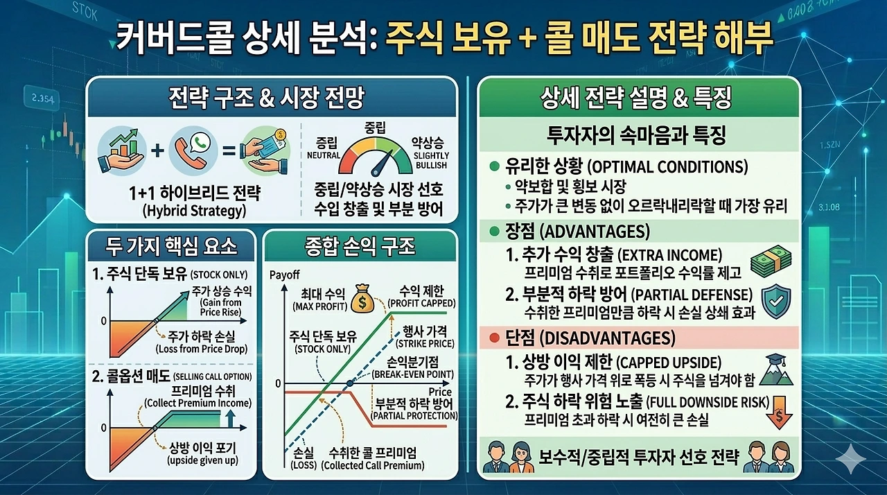 특정 방향에 베팅하는 단일 포지션이 아니라, S&P 500이나 나스닥 100 같은 기초 자산을 '보유'한 상태에서 콜옵션만 '파는(매도)' 전략.