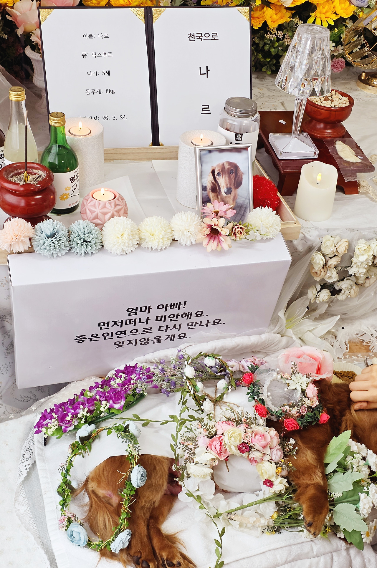 아직도 한참 뛰어가고 있다면. 조금은 쉬어가도 되. 인간의 시간으론 짧은 세월이었지만 너에겐 제법 긴 세월이였을테니. 항상 지금 여기에 머무르는 너에겐 굉장한 여정이였을테니. 충분히 잘 해줬고 그것보다 더 잘 할 수도 없었으니 말이야. 우리에게로 와줘서 정말 반가웠고 우리 모두에게 잘해줘서 정말 고마웠어. 가장 적당한 날에 가장 적당한 너로 함께할 수 있었으니. 행여나 가족들에게 못 전한 말이 있다면 걱정하지마. 나르가 형아 꿈에 나와서 말해줬다고 전해줄께. 이 가정에서 태어나 정말 행복했다고. 다른 누구도 아닌 우리 가족과 함께해서 정말 포근했다고. 서로서로 매일 안아주고 쓰다듬어 줄 수 있어서 마지막까지 정말 편안했다고.
