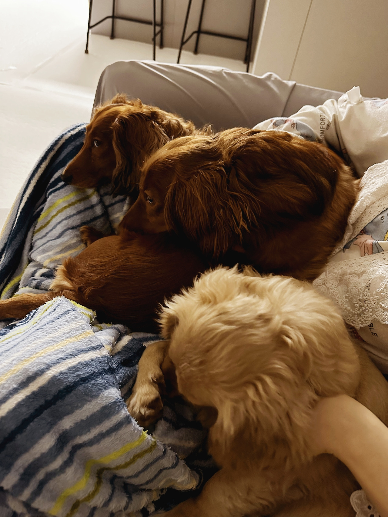 이제 무지개 다리는 다 건넜으려나. 1등으로 달려서 푸르른 잔디에 제일 먼저 도착했으려나. 우리 가족을 위해 가장 먼저 가서 가장 좋은 자리를 잡아놓으려고 일찍 출발한거니? 딱 함께했던 것만큼만 더 있다가 가도 늦지 않을텐데. 하필 형아의 급한 성격을 닮아버렸구나. 형아가 사람 중엔 제일 먼저 갈테니 훗날 나르가 기다리는 집으로 찾아갈 나은이 엄마와 토르 아빠와 함께 기다려주렴. 세 강아지 가족이 햇살 가득한 마당있는 집에서 우리를 맞이하는 날을 기대할께. 강아지 동산으로 꼭 데리러 갈테네 다같이 엄마와 온유를 맞이하자.