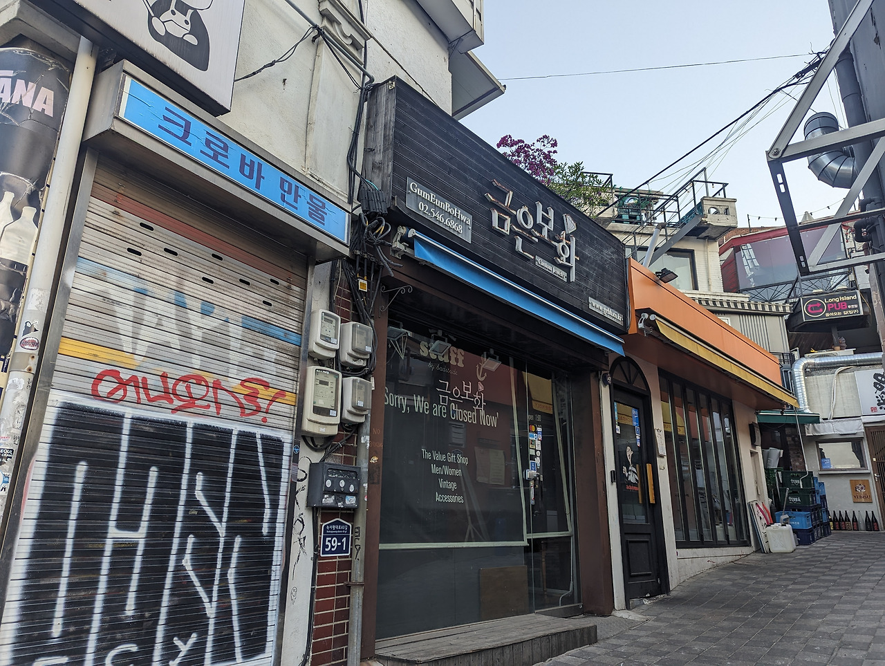 이태원 골목길. 만물이 있고 금은보화가 있다. 둘이 붙어있으니 조사 하나는 넣어도 되겠지. 만물이 금은보화다. 금은보화를 찾을 게 아니다. 만물에서 금은보화를 보는 것이 근력이다.