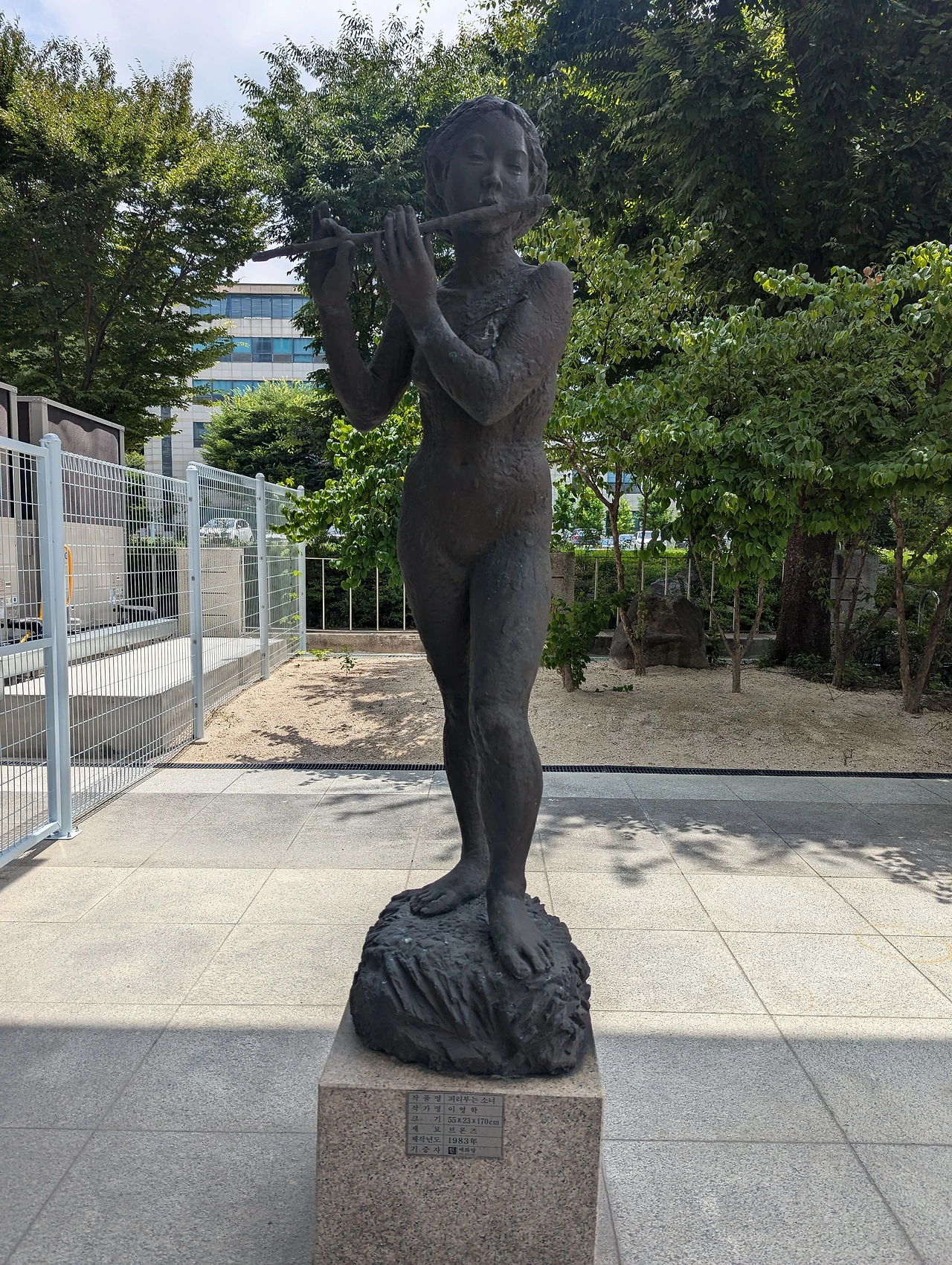 피리 부는 소녀. 나보다 먼저 태어났구나. 회사에 이 소녀가 존재한다는 사실을 누가 알까. 점심 먹으러 나가다가 찍다. 멈추지 않는 노래. 들리지 않는 연주. 마음에 보이는 음악.