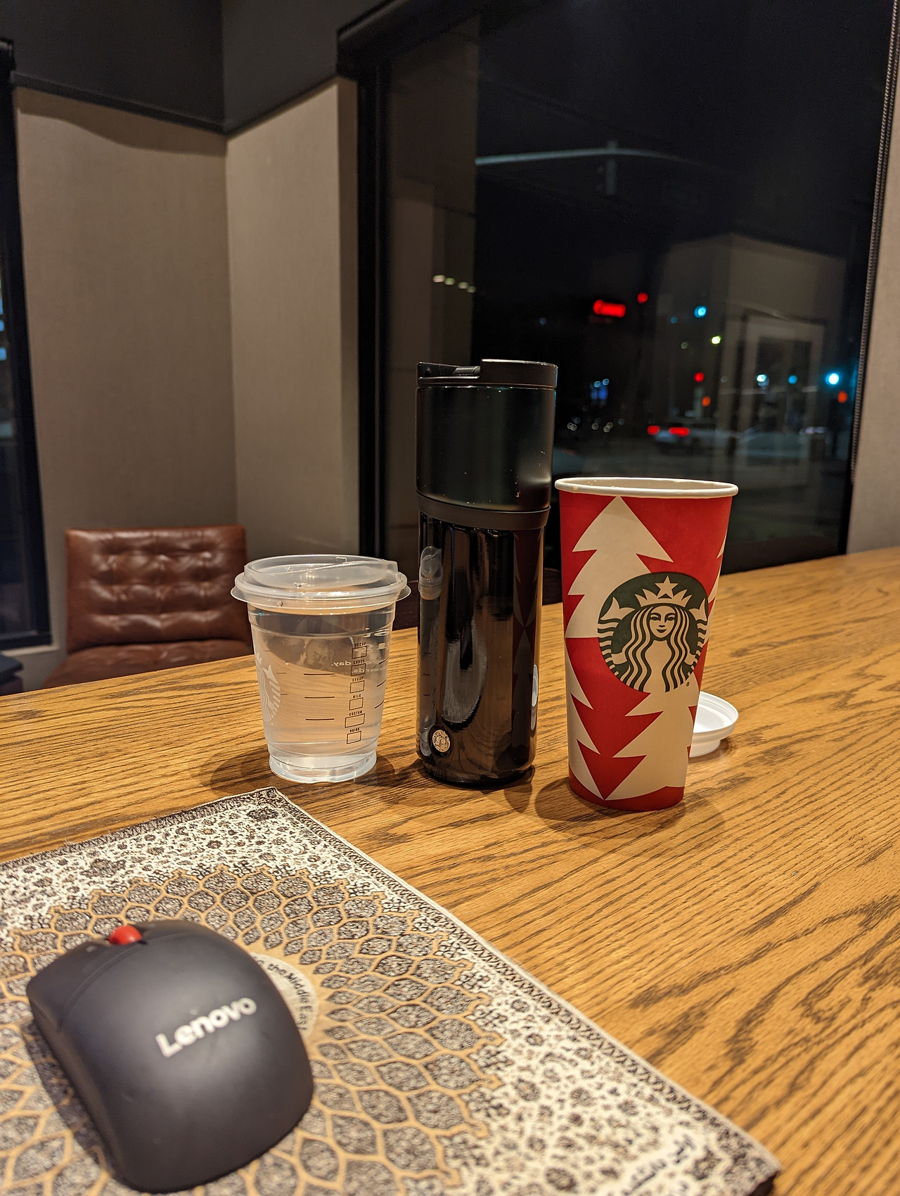 블랙커피 한 잔으로 잠을 깨우고 쓴다. 스타벅스에서 비몽사몽하며 30분을 흘려보냈다. 커피를 리필해 왔으므로 이제 쓸 때가 됐다. 나를 정제하는 수단으로 아침일기를 쓴다. 다짐일 수도 있고 확인일 수도 있다. 내 존재가 어디쯤 왔는지 측량하는 방법이기도 하다. 나가서 찬 바람을 쐬고 왔다. 왼손에 찬 와이즈(Wyze)의 만보계는 2,000을 가리키고 있다. 아침에 스타벅스를 왕복하면 4,000보 정도가 된다. 회사까지 걸어가면 8,000보를 채울 수 있겠지만 차를 갖고 퇴근한 날에는 불가능하다. 사무실 주위를 더 걷는 수밖에 없다.