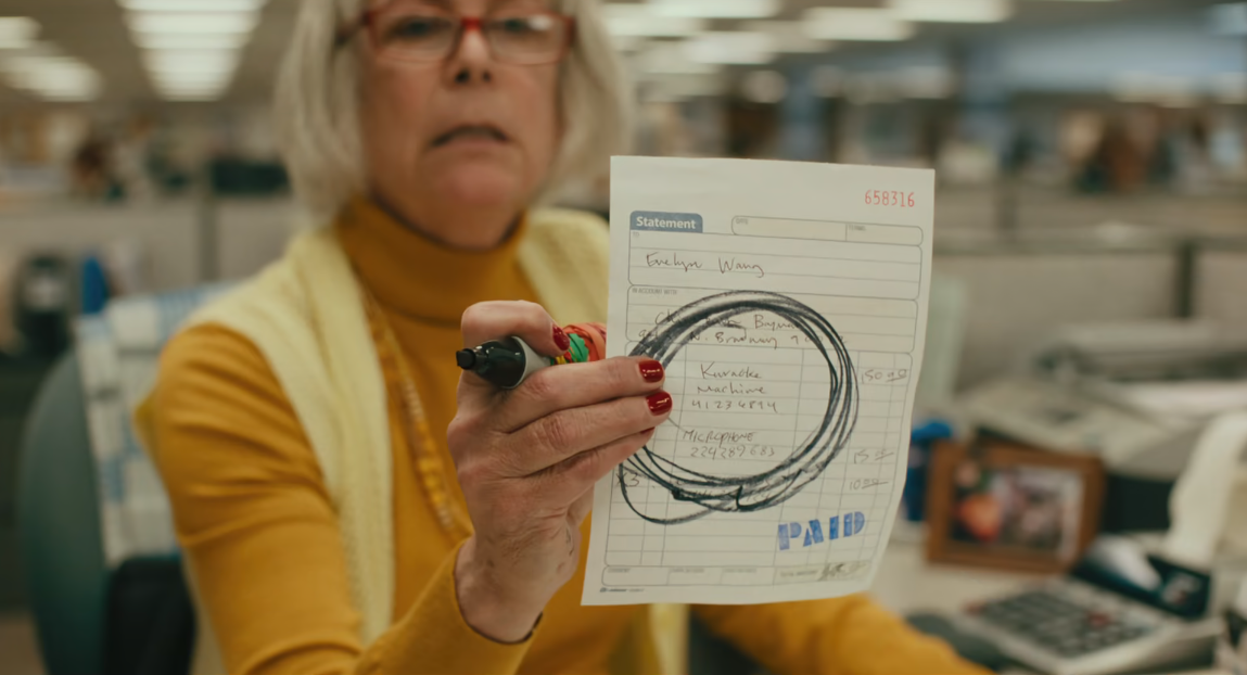 미국으로 이주한 이민자인 에블린은 타국에서 생계를 위해 세탁소를 운영한다. 그러나 그의 세탁소 운영기는 결코 순탄하지 않다. 그는 끝없이 몰아치는 성가신 손님들을 응대해야 하는 와중에, 세탁소 운영에 전혀 도움이 되지 않는 - 세탁이 완료된 옷가지에 모조 눈알을 붙이곤 하는 - 남편 '웨이먼드'의 뒤치다꺼리를 해야 한다. 게다가 그에겐 부양해야 할 아버지와, 자신의 정체성을 받아들여 달라며 항의하는 레즈비언 딸 '조이'도 있다. 그러나 그를 가장 괴롭게 하는 것은 그의 세탁소가 심각한 세무 문제에 처해있단 사실이다. 수많은 영수증을 처리해 국세청에 방문해야 하는 에블린. 결국 그는 영수증이 늘어진 탁자 앞에 앉아 탈진한다.