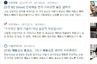 출처 불명의 "에토스60%, 파토스30%, 로고스10%" 의 비율