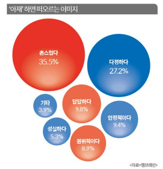 어렸을 때, 삼촌이나 아저씨를 '아재'라고 불렀다. 조금은 촌스러운 이름, 아재가 이제 어엿한 현상으로 대접받고 있다. 트렌드 코리아에서 선정한 '2016년 10대 트렌드' 중의 하나가 '아재'였다. 당시 한 조사 기관의 발표에 따르면 '아재' 하면 떠오르는 이미지로 '촌스럽다'(35.5%)와 '다정하다'(27.2%)가 상위권으로 꼽혔다. 아재의 반대말은 '개저씨' 나 '꼰대'로 권위주의적이고 고지식한 이미지를 포함한다.
